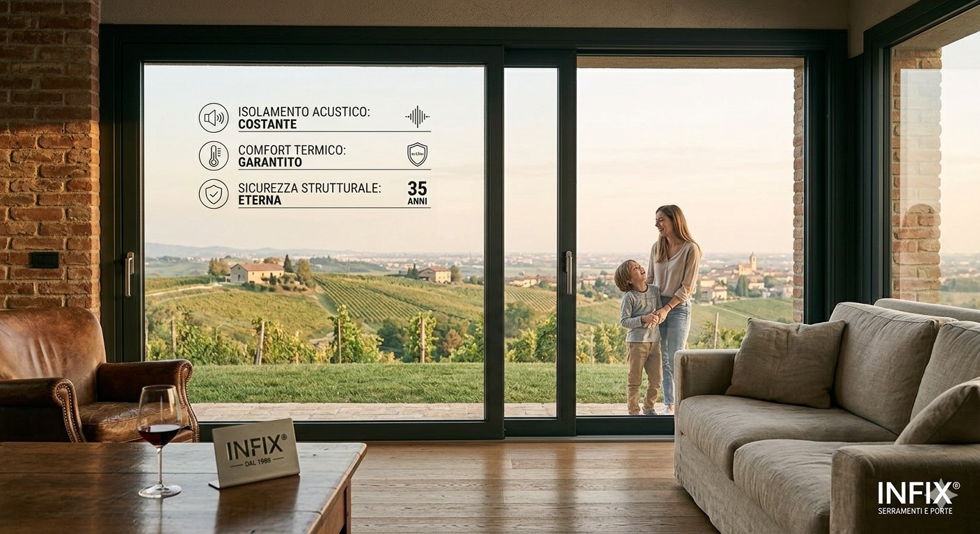 Un serramento progettato bene non cambia comportamento. Non perde isolamento. Non perde silenzio. Non perde sicurezza. Non perde valore.